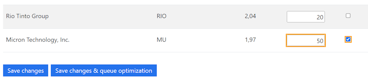 Adjustments will only be taken into account once you reoptimize the portfolio: "Save changes & queue optimization".